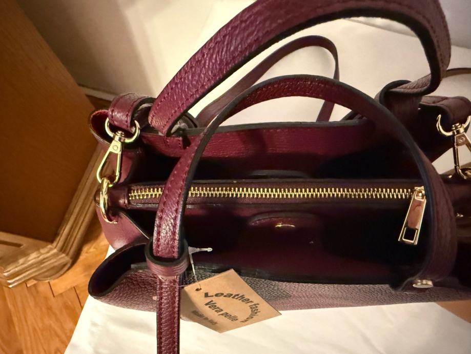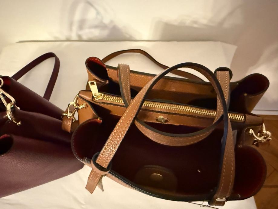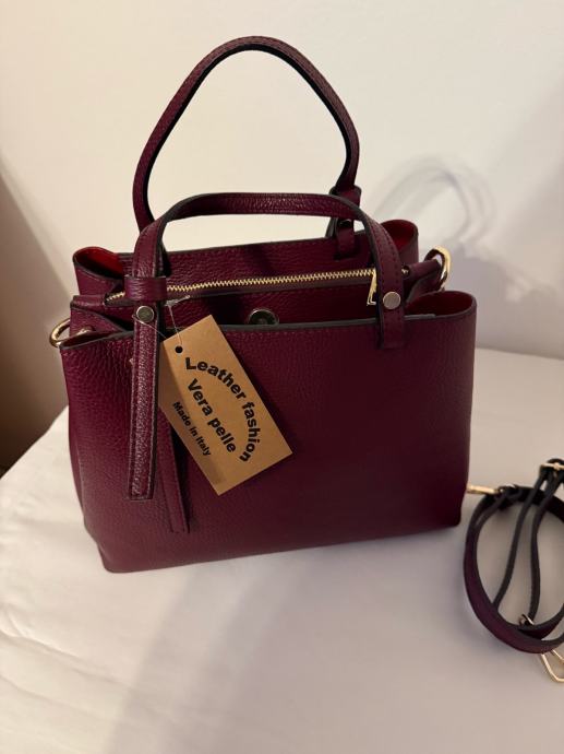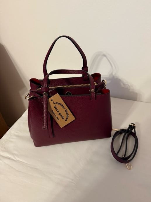 Elegantne i kvalitetne torbe od prave kože, dostupne u bordo i smeđoj boji.