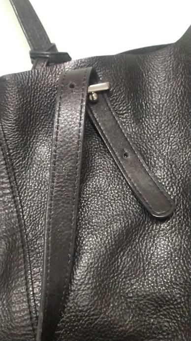 Torba od kvalitetne prave goveđe kože. Sastavni dio torbe je novčanik koji visi u unutrašnjosti, podesive ručke . Kopčanje na druker. Nosiva u raznim prigodama,