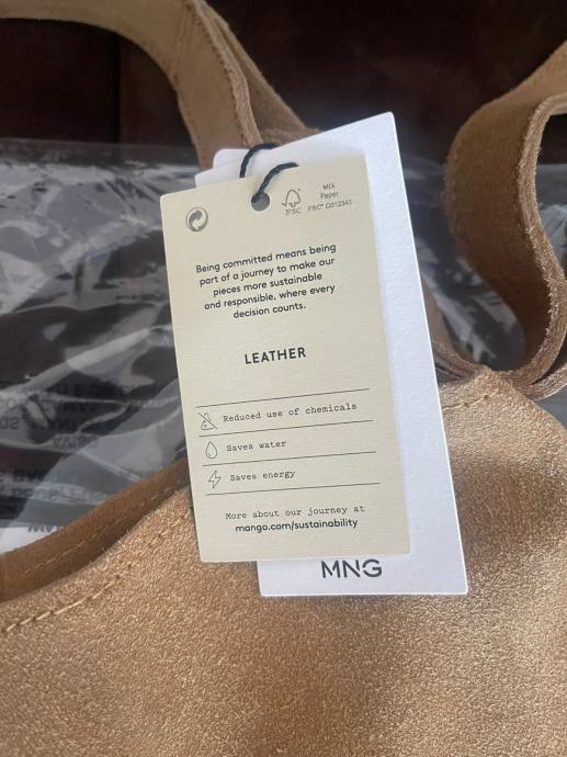 Prodajem žensku torbu Mango, od brušene kože, nova, nikad nošena, još uvijek s original etiketom.