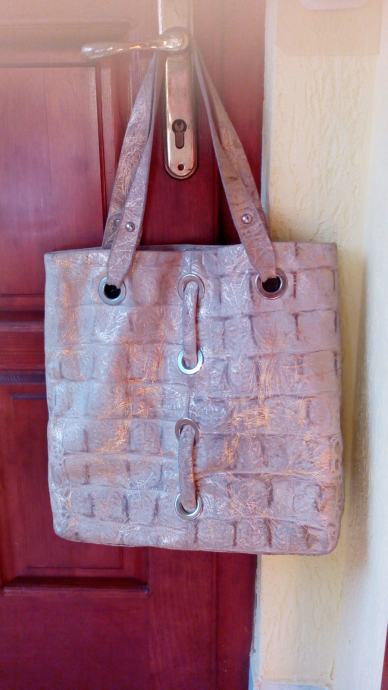 PRODAJEM KOŽNU, ZLATNO BIJELU TORBU, GOTOVO NOVU, KVALITETNU I PRAKTIČNU. PROSTRANA, VRLO LIJEPOG IZGLEDA, OSTAJEM NA RASPOLAGANJU ZA DODATNE INFORMACIJE.