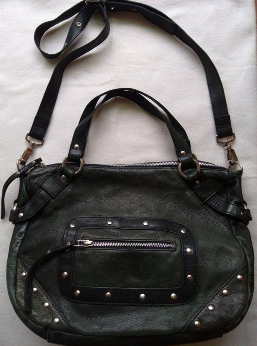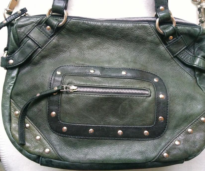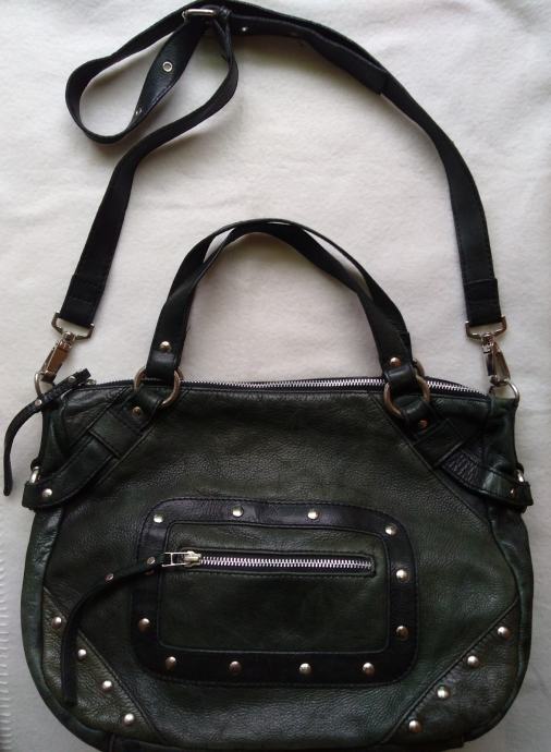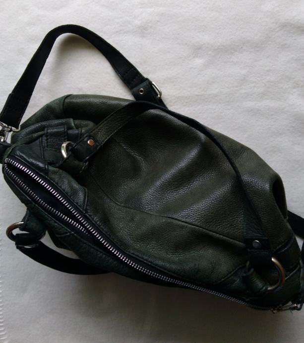 Za nositi u ruci ili preko ramena, očuvana, lijepe tamnozelene boje, prava koža, kupljena u Rimu, izuzetno mekana i kvalitetna, dimenzije: širina 36 cm, visina 27 cm, dubina 14 cm, izvrsna!