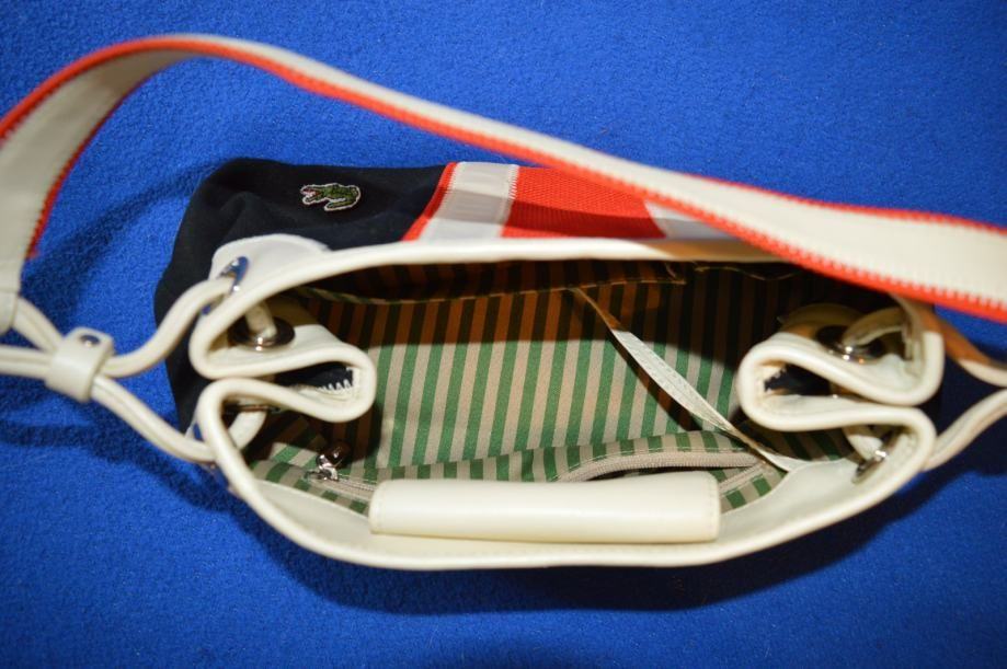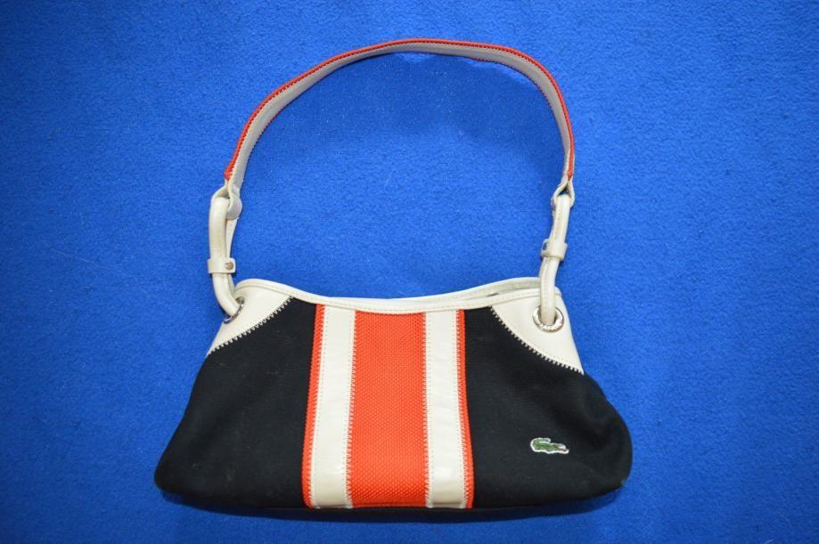 1 put nošena, kao nova. meni ipak premala. Crne boje sa crvenim i bež (bež je koža) detaljima. Dimenzije cca 26 x 14 cm. Unutra 1 pretinac na cif i 2 manja pretinca za npr.mobitel i privjesak za ključeve. Mala, slatka, dovoljna za osnovne stvari.