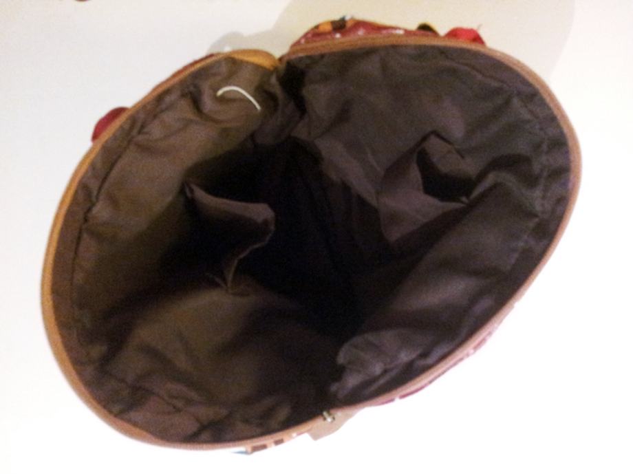 Nova torba sa stiliziranim razigranim uzorkom i prišivenim lavom.