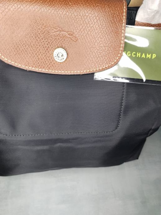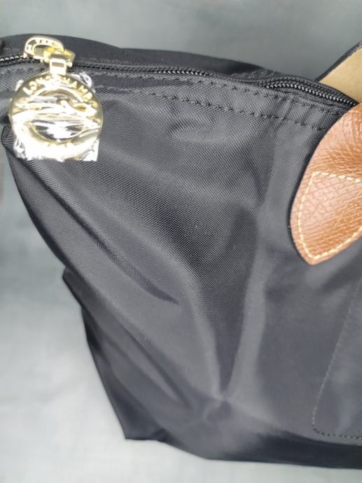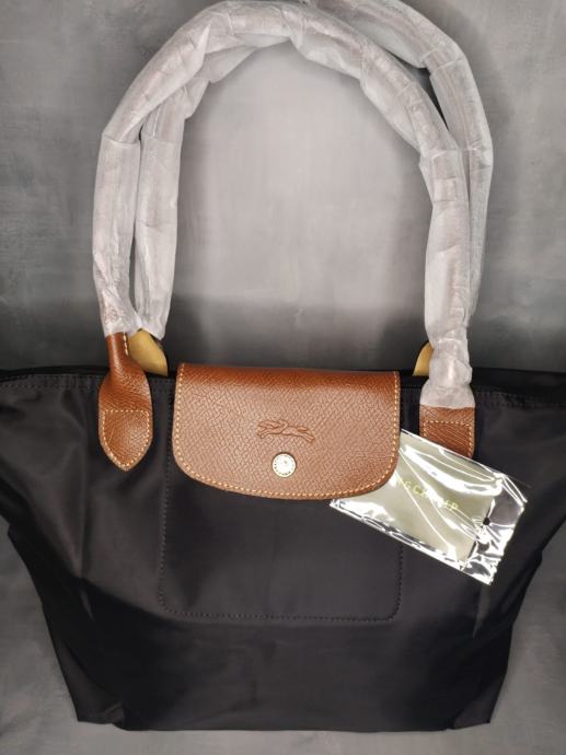 Prodajem Longchamp torbu Le Pliage u veličini L, crne boje s smeđim kožnim detaljima. Torba je nova s etiketom, nikad korištena. Izrađena od karakterističnog najlona s kožnim preklopom na prednjoj strani, kožnim ručkama i zlatnim metalnim detaljima. Zatvaranje gornjeg dijela torbe osigurano je patentnim zatvaračem.dimenzije 31x30x19