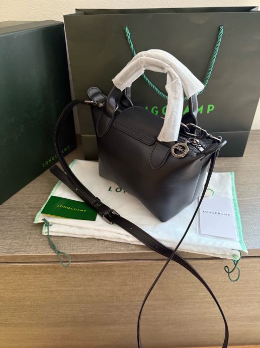 Prodajem potpuno novu Longchamp torbu u elegantnoj crnoj boji, još uvijek s etiketom. Torba dolazi u originalnom pakiranju sa zaštitnom vrećicom i karticom autentičnosti. Praktična je za svakodnevnu upotrebu s ručkama i dodatnim dugim remenom koji se može skidati.