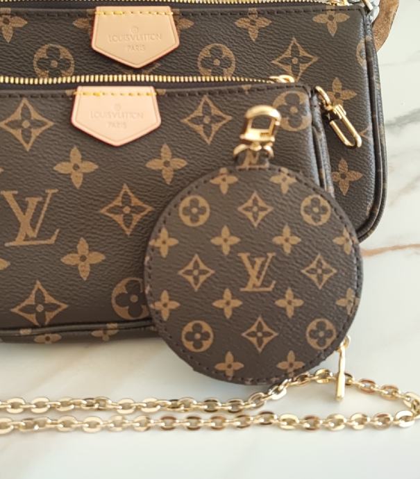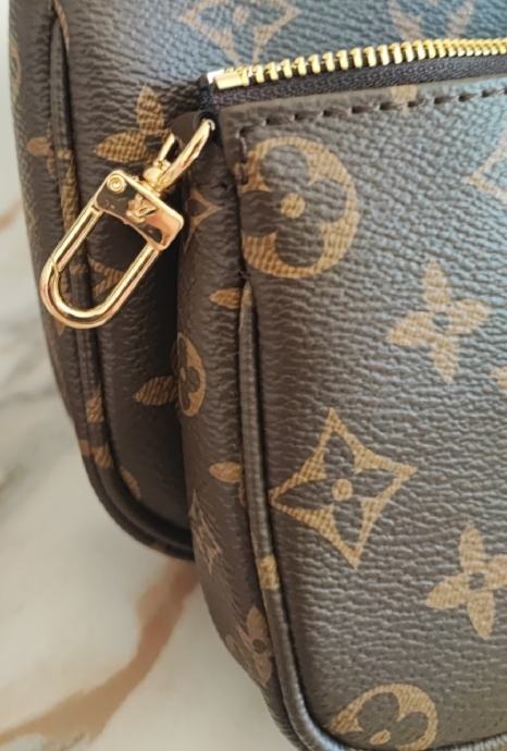 Prodajem repliku Louis Vuitton multi pochette model, 3u1, nikad nošena, kompletno očuvana, NOVA, moguće kombinirati i nositi na više načina. Trenutno jako popularan model. Prilikom vidljive uplate šaljem Tiskom ili Paketomatom. Prilikom kupnje više artikala moguc popust. Pogledajte i moje ostale oglase.