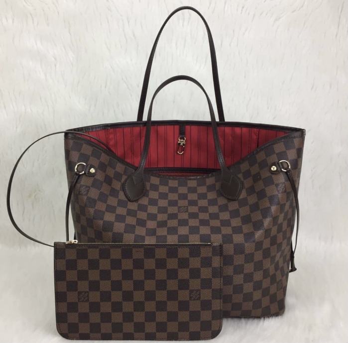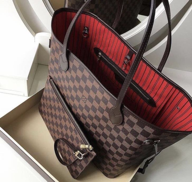 Louis Vuitton Neverfull torba od prave 100% kože. Kvaliteta torbe je 1: 1, dakle vrhunska kvaliteta i najbolje što se može dobiti od ovog modela torbe. Na torbi su i najmanji detalji. Torbica ima serijski broj. Cijena torbe je 250€. Set uključuje: