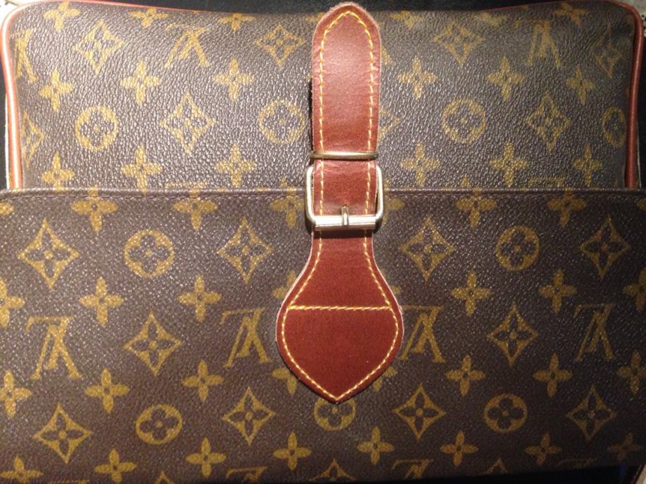 Louis Vuitton Efektna torba "poštarski"model,dugi remen sa regulacijom,unutrašnjost prostrana,prakticni unutarnji i vanjski dodatni pretinci sa cifom..vrlo očuvana kombinacija prave kože i eko kože..replika...