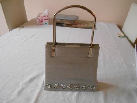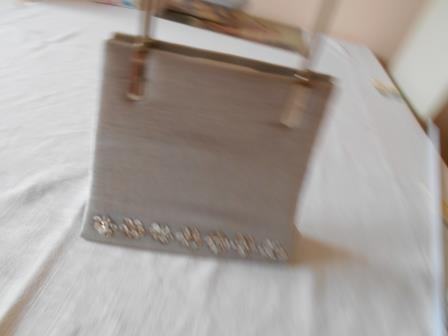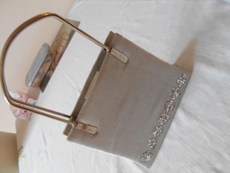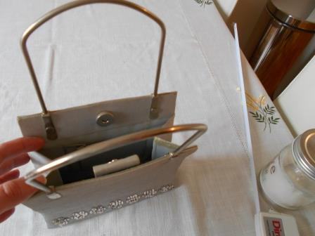 Mala, prekrsana fina srebrna torbica za nositi u ruci. Za svečane prilike.