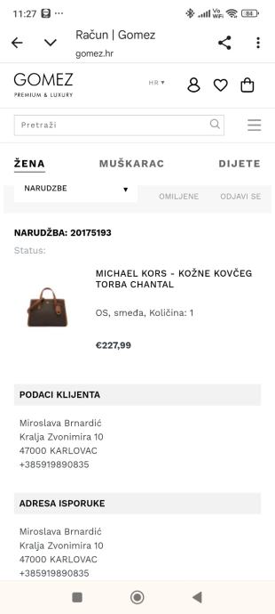 MK torba,kao nova dva puta nošena,kuplena na Gomez.hr racun i slika u prilogu