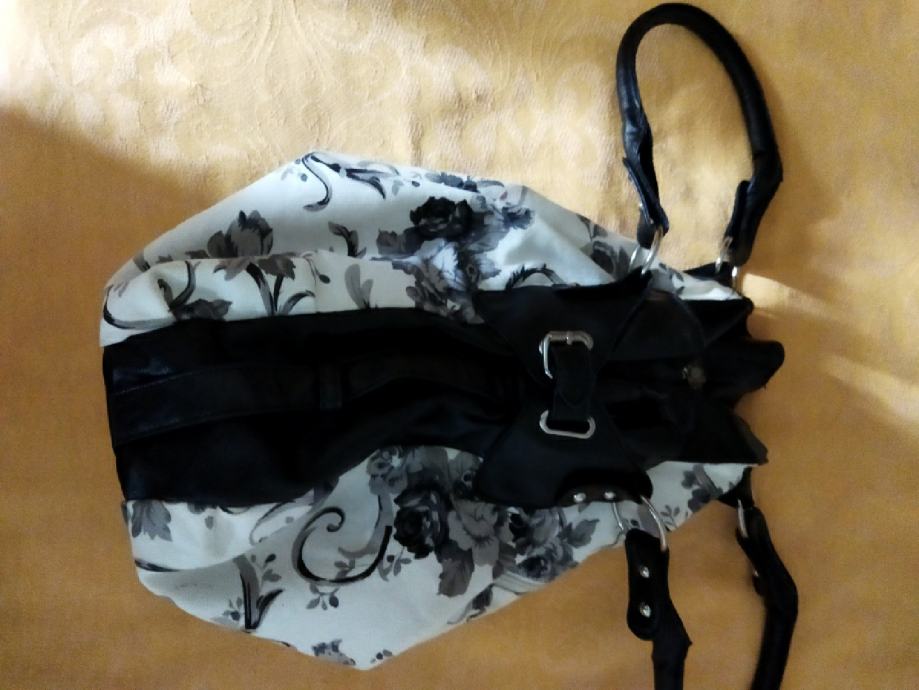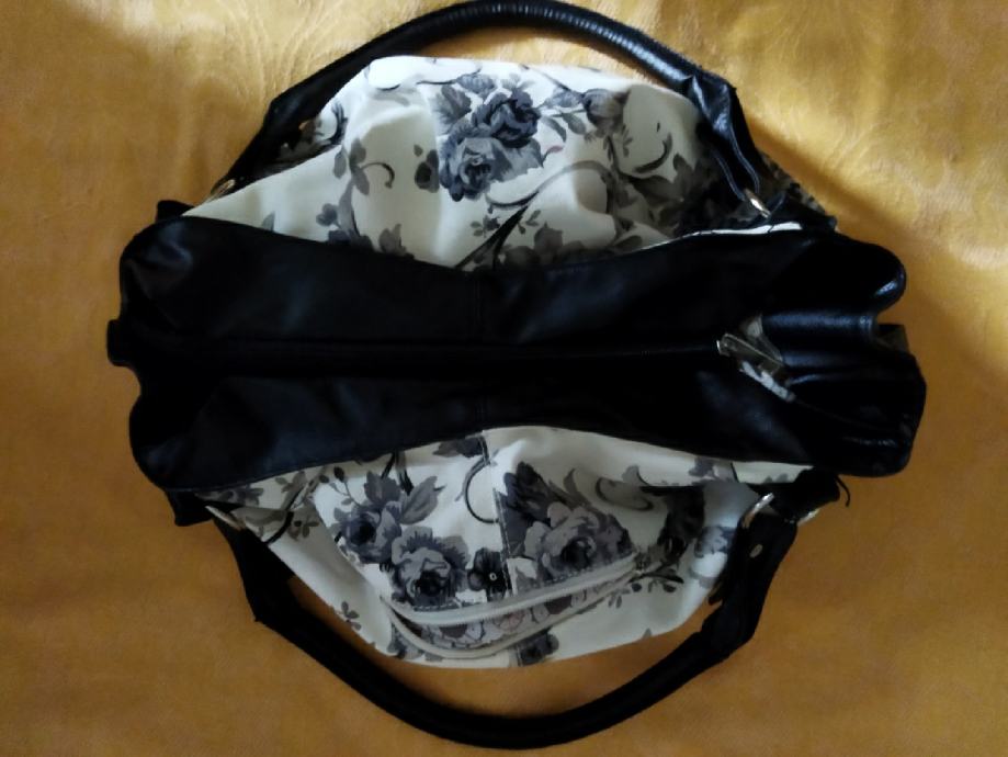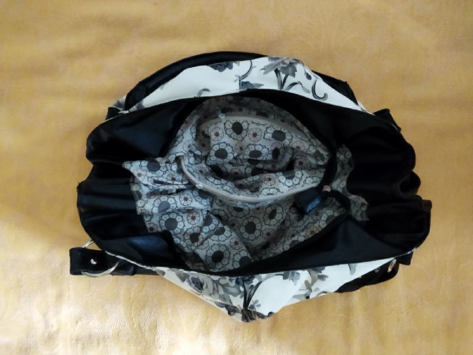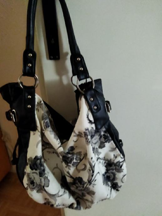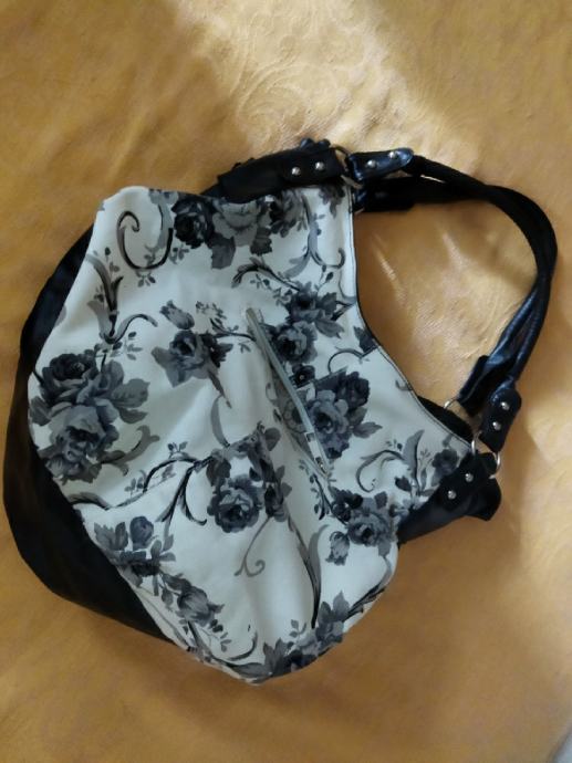 Originalna cvjetasta crno-sivo-bijela torba
