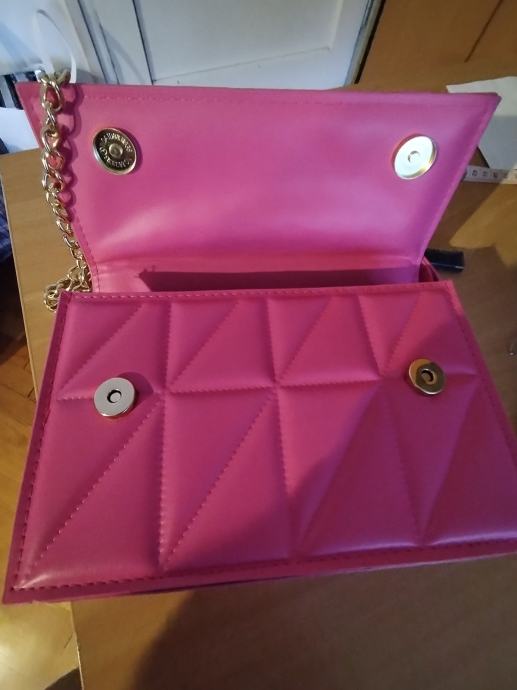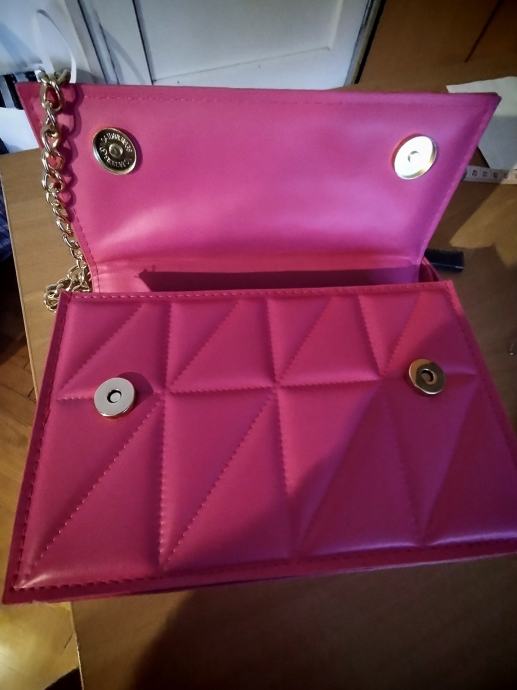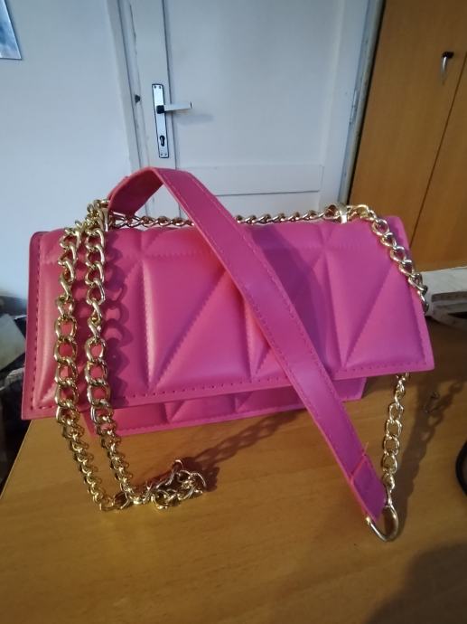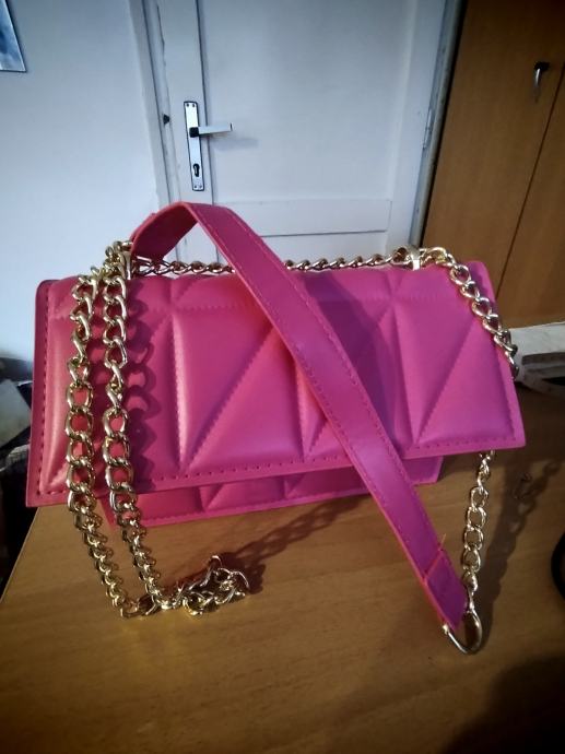 Prodajem novu modernu torbicu, preklopnu, a kopča se na magnet. Dim. torbice su 22 x 15 x 6cm. i preštepana je kao na slici. Ručka je dugačka 105cm, a može se skratiti na 60 cm. Sama ručka je puna, a ostalo je lanac.