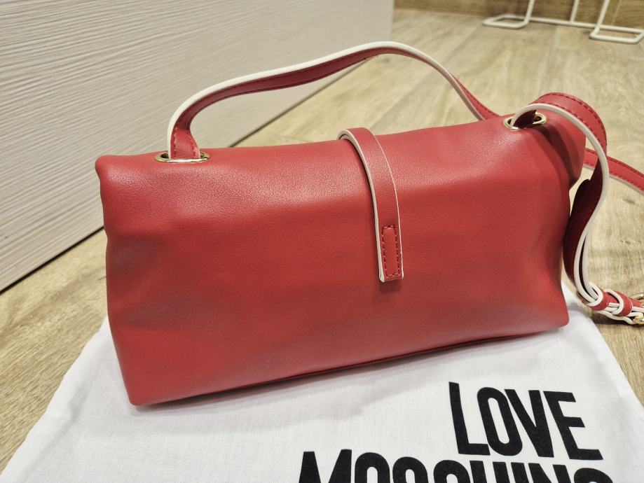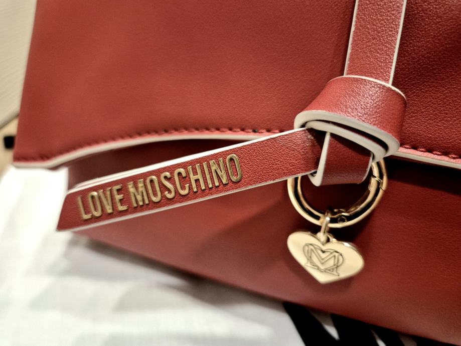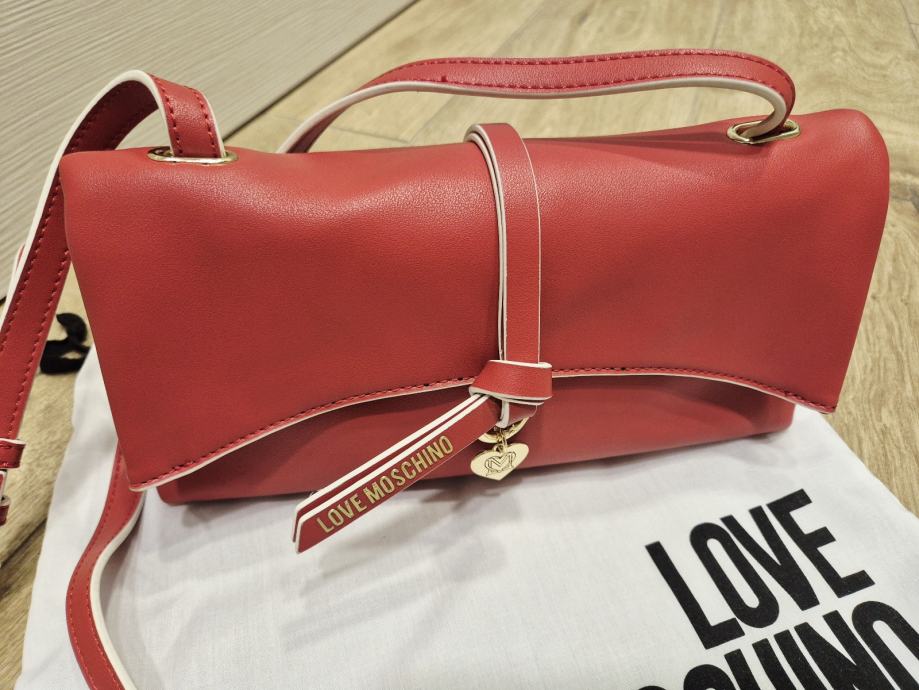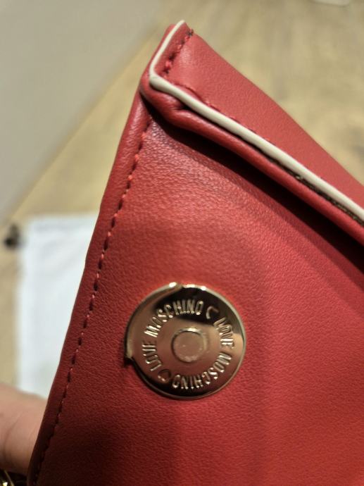 Nova MOSCHINO torbica lagano isprane crvene boje, dolazi s originalnom zaštitnom vrećicom. Elegantan model s prepoznatljivim LOVE MOSCHINO privjeskom u obliku srca i podesivim remenom za nošenje. Torbica je dobivena na poklon ali nije baš moja boja.