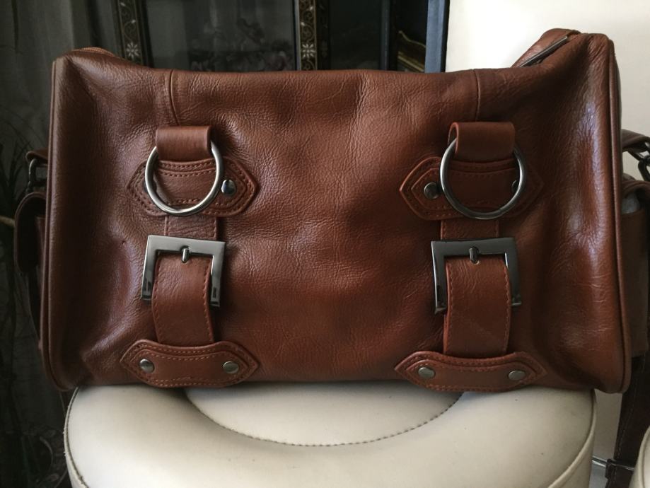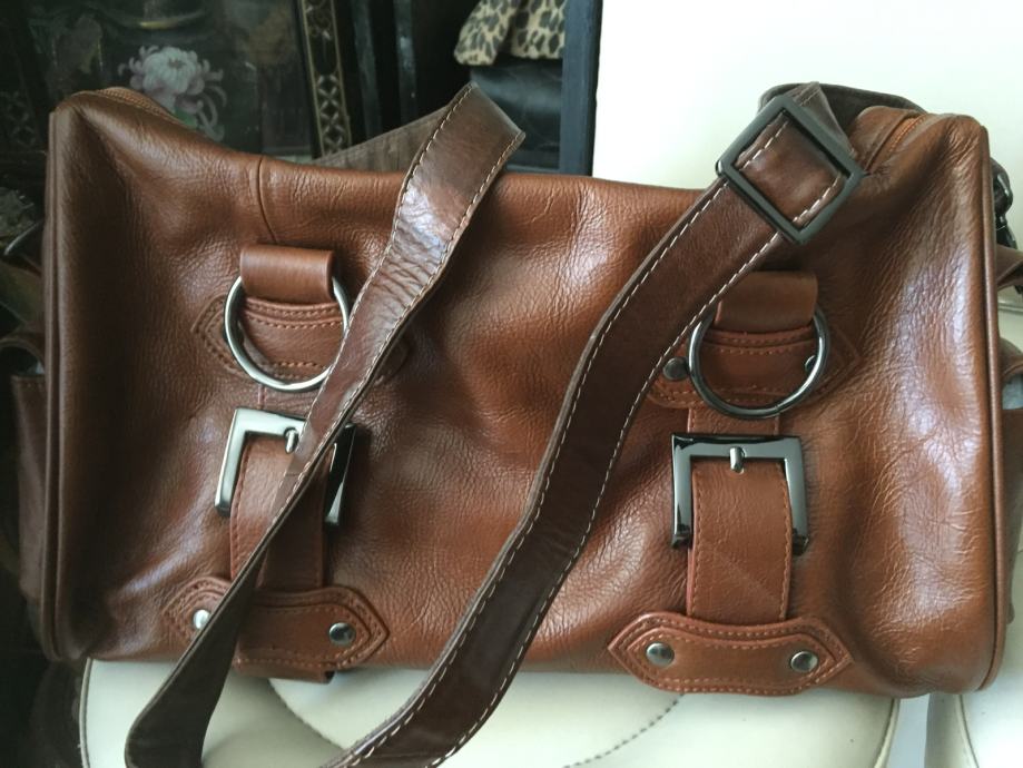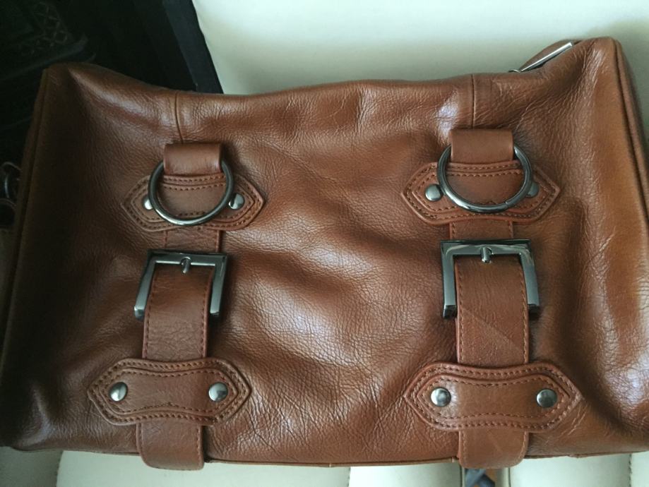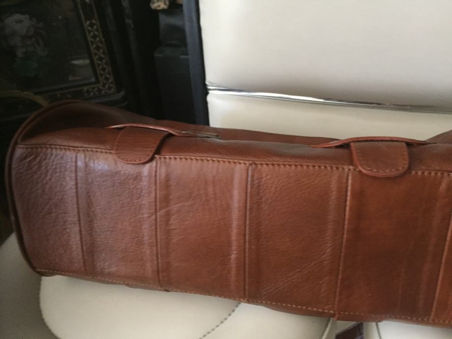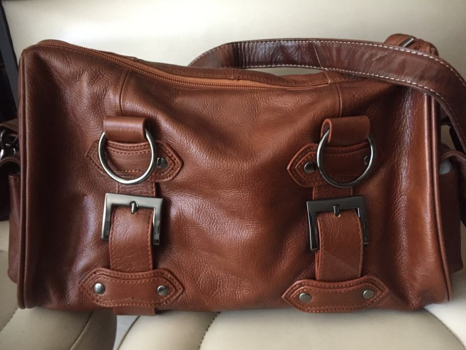 NEXUS kožna torba sa praktičnim đepovima..i pregradama na dugu rucku..kvalitetna prava koža u toploj nijansi boje konjaka,saten podstava.(..ručka tamnije smeđa.) nenošena!