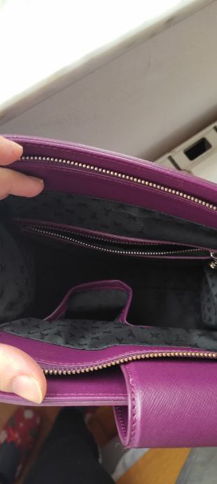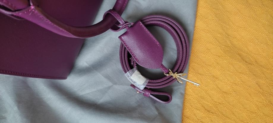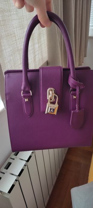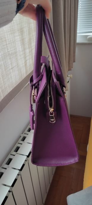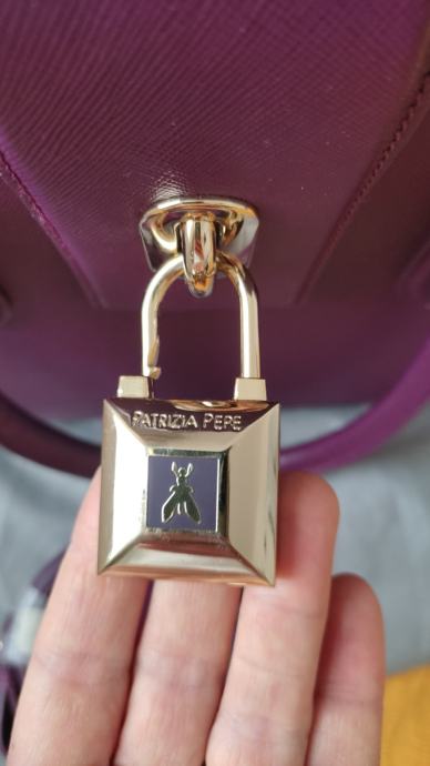 Ovo je par puta nošena damska lila kožna torba Patrizia Pepe, original kao i ostalo,kupljena u Praškoj ulici.Torba nema nikakvih oštećenja i uz nju ide i pripadajući remen.Koža je čvrsta i otporna na habanje.Maltene novo.Prodajem jer mi je višak u ormaru.