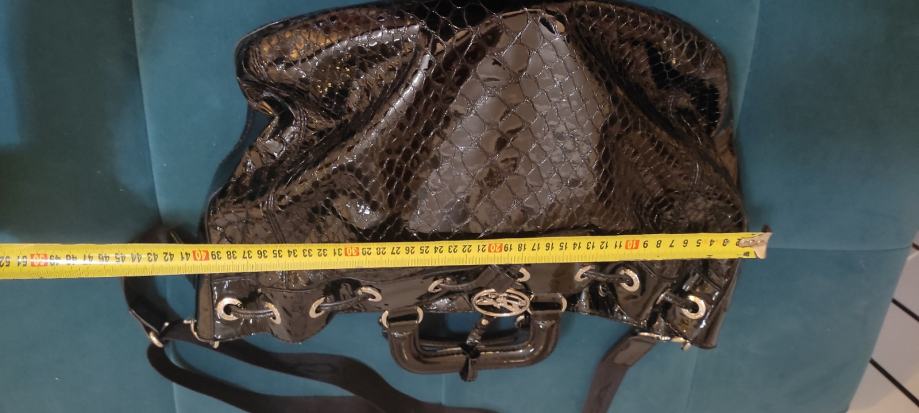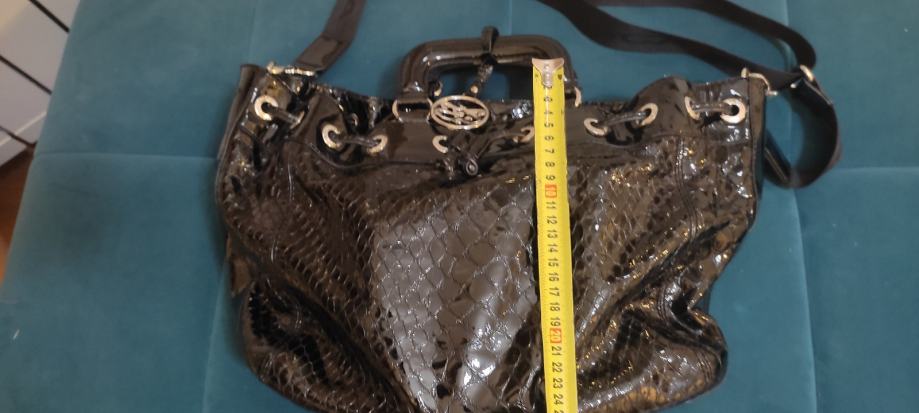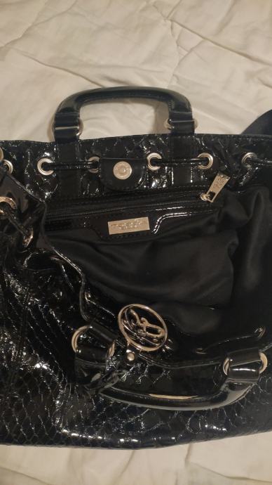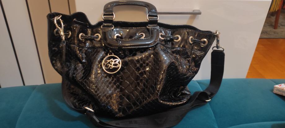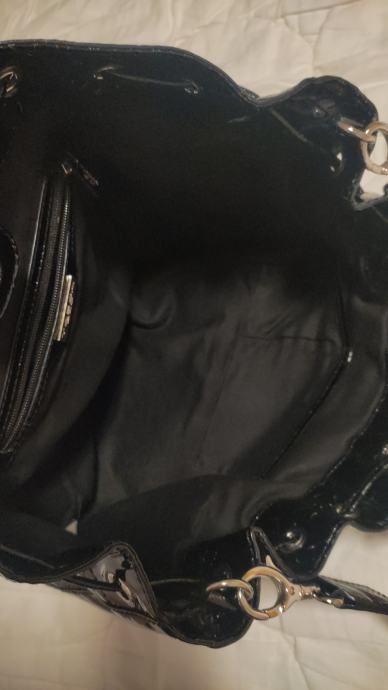 Prodajem original Tosca Blu lakiranu crnu torbu sa podesivim remenom, tri dodatna unutarnja pretinca i dustbagom, jako je prostrana. Na zadnjoj fotografiji je vidljivo jedino malo oštećenje,ostalo kao novo.