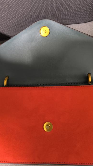 Prodajemo žensku torbicu dimenzija 22,5 cm u širini x 16,5 cm u visini, od prave kože, originalna od Parfois Genuine Acessories. Torbica je u jako dobrom stanju s minimalnim tragovima korištenja, rabljena svega nekoliko puta. Ima unutarnji džep s prednje strane. Predviđena za žene od visine 170 cm. Kupljena 2018.