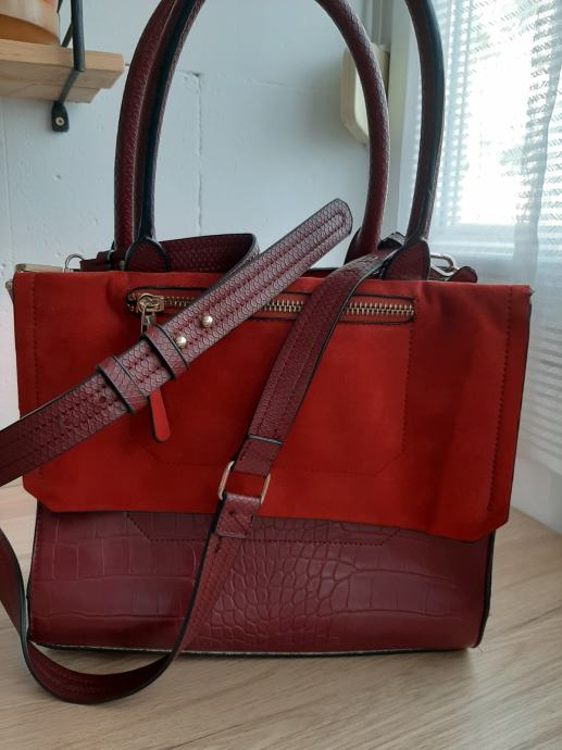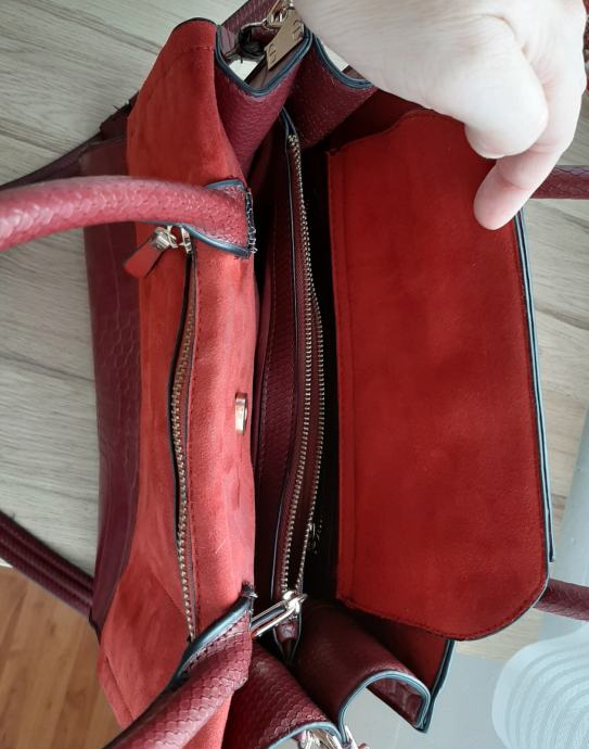 materijal umjetna koža, crveni dio kao imitacija brušene kože, bordo boja imitacija kroko kože