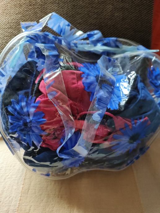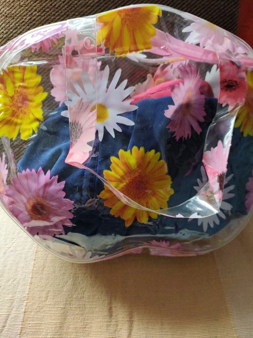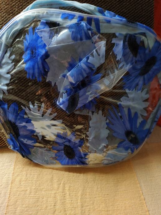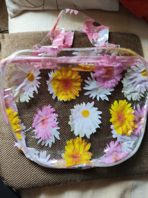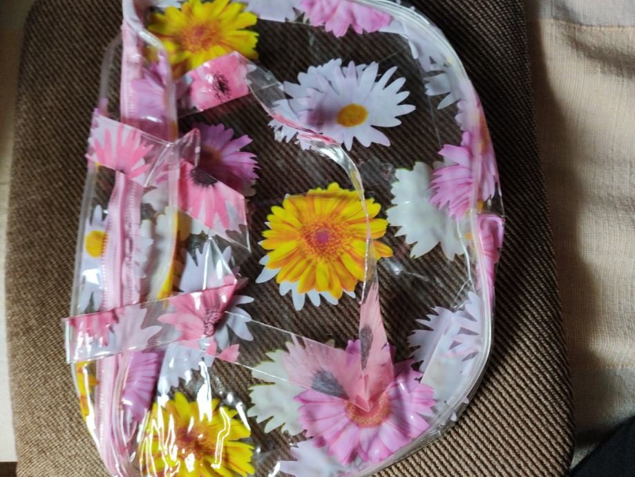 Šarene praktične torbice od čvrstog plastičnog materijala, s ručkama i patentnim zatvaračem, dimenzije 25×32 cm, za različite namjene, neupotrebljavane. Cijena se odnosi na jednu, a obje zajedno su 18 eura