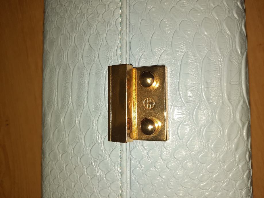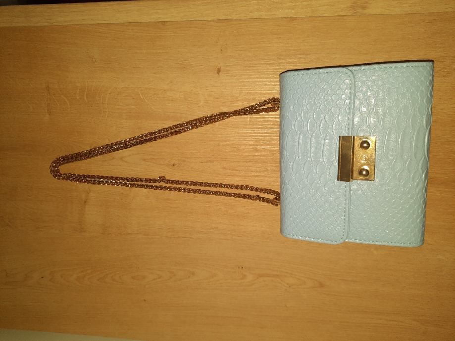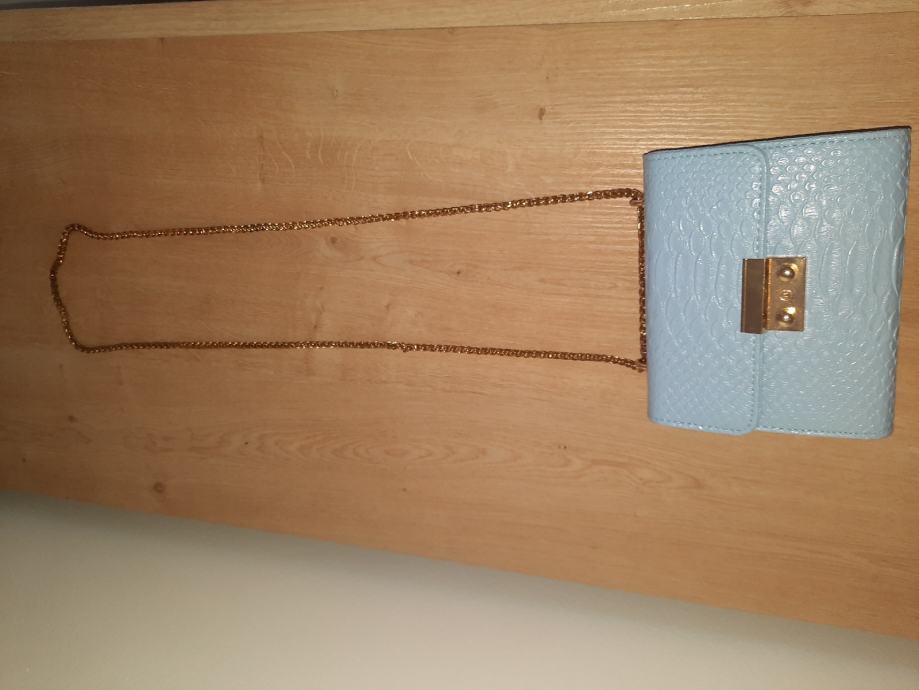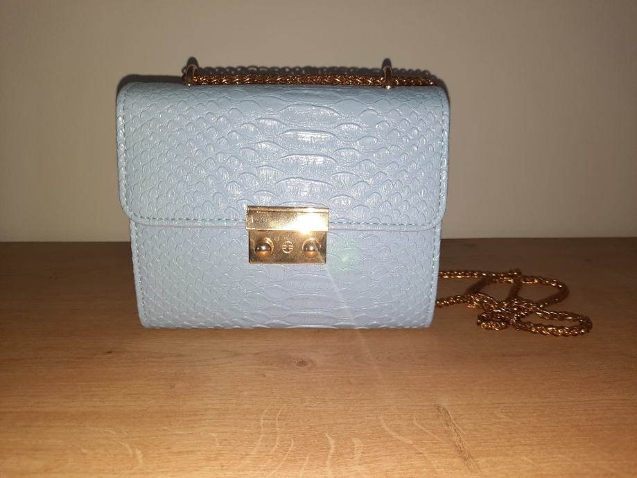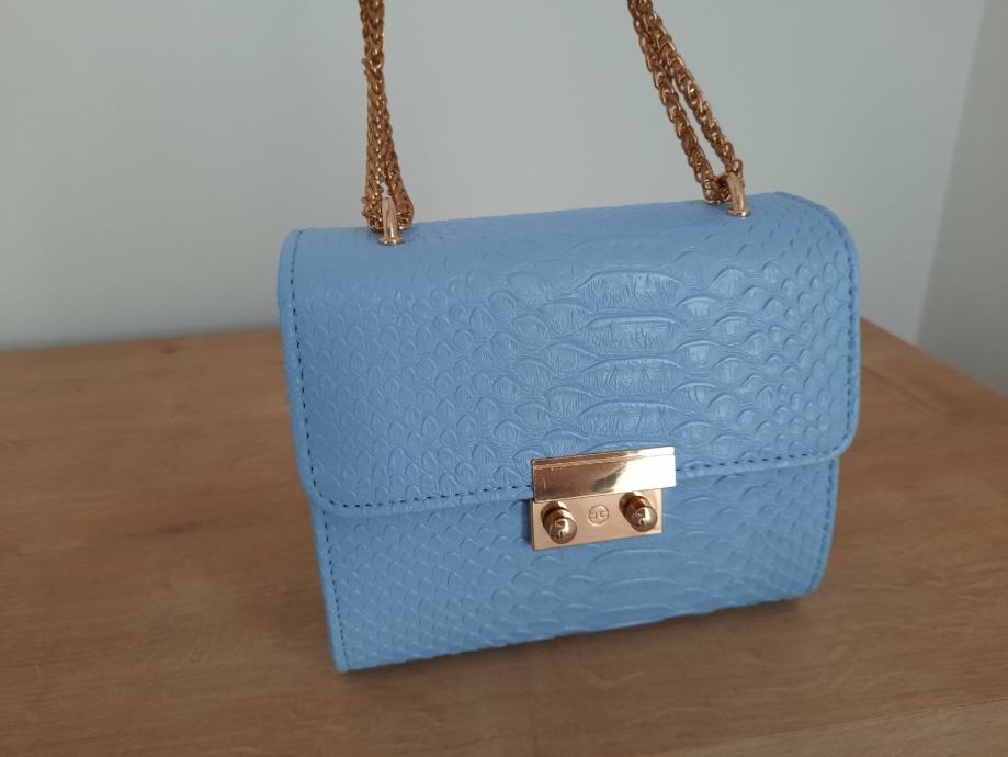 - Svijetlo plava torbica zmijskog "uzorka"
