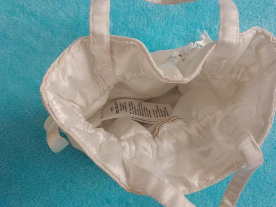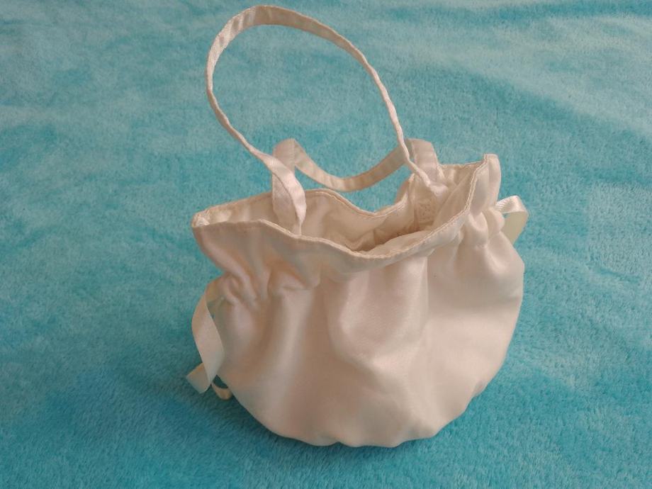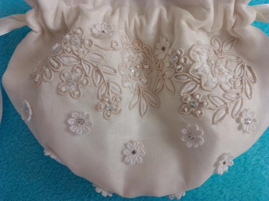 Bijela podvezica za svadbu od čipke ručni rad i satenska mala torbica za vjenčano prstenje ili za šminku za brzinski touch-up. Cijena za oboje zajedno 3 eura + pt
