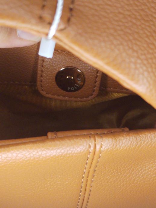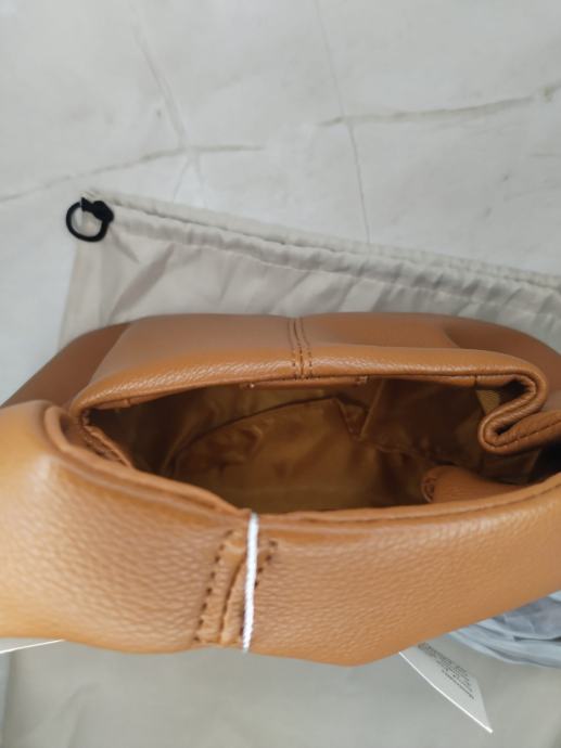 Prodajem Polène mini torbu u camel/cognac boji, potpuno novu s etiketom. Torba je izrađena od teksturiranog zrnatog materijala koji imitira pebbled kožu, s diskretnim zlatnim logotipom branda na prednjoj strani. Zatvara se magnetskom kopčom s Polène oznakom, a unutrašnjost je obložena glatkim materijalom u tonu torbe. Dolazi s originalnom vrećicom za pohranu i dodatnim ramenim remenom.