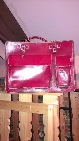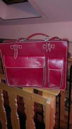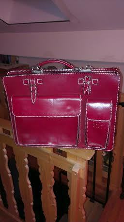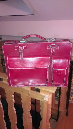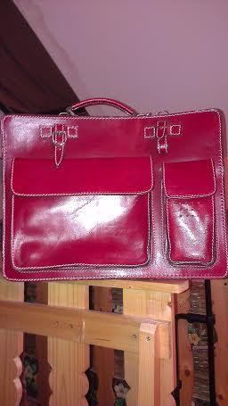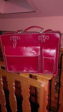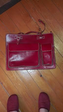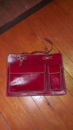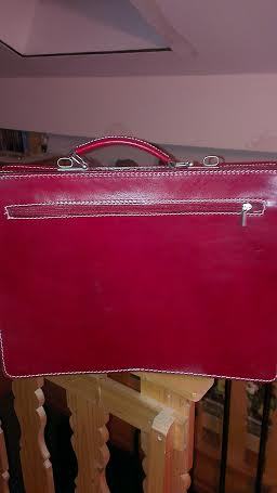 Prekrasna bordo torba od prave fine tvrde kože, poslovna, idealna za laptop i razne materijale i dokumentaciju, s nekoliko vanjskih džepova i dugačkog remena.