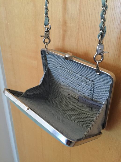 Vrlo lijepa zelena torbica iz Zare sa srebrnim detaljima. Dimenzije 15 x 19 cm. Traka se može skinuti. Divna, malena i praktična. Mehanizam otvaranja radi savršeno. Nošena doslovno jednom i samo stoji u ormaru, nije moj stil. Očuvana, bez ikakvih oštećenja i zaista kao nova. Skupo plaćena. Poštarina nije uključena. Mogućnost primopredaje u Zagrebu.
