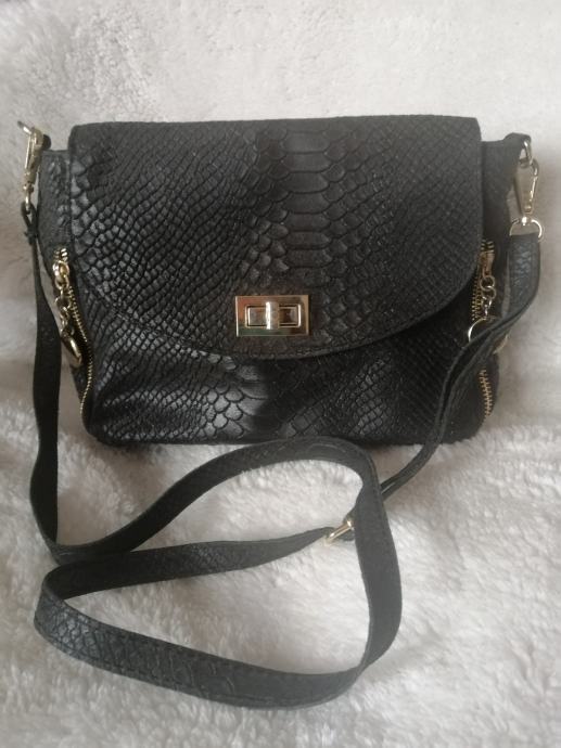 Roberta M talijanska kožna vintage torba s croc uzorkom, meka koža, očuvana, remen za na rame.