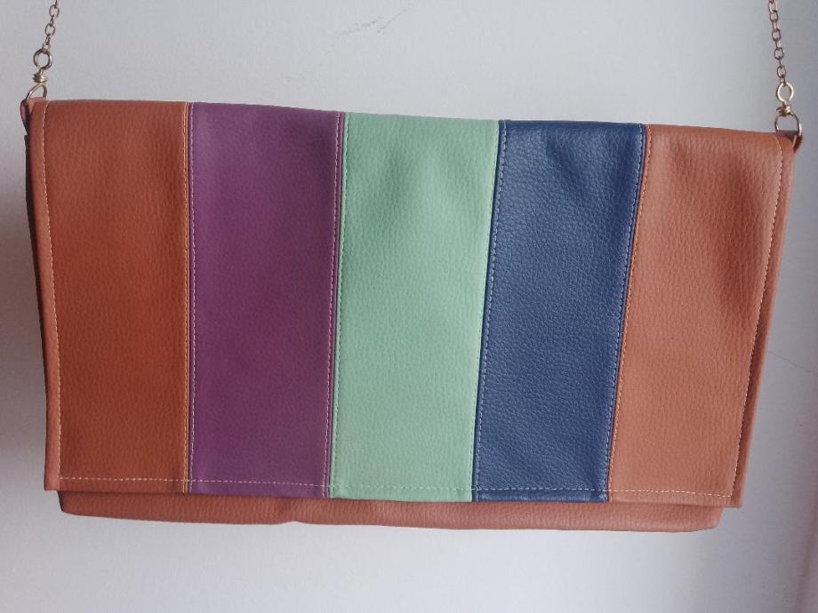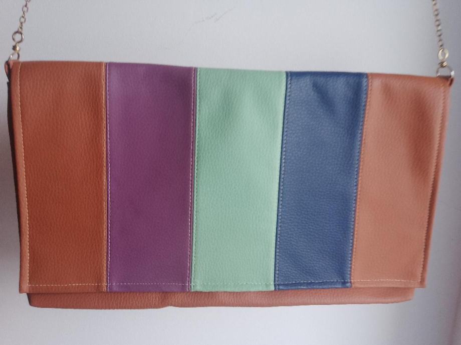 Ručna pismo torba veća s tankim elegantnim lancem. Boje konjak smeđa, mint zelena, modra i ljubičasta, pa ide na više kombinacija. Iznutra džepić. Kao nova, bez tragova nošenja. Casual, ljetna za svaki dan. Skaj , umjetna koža . 5 e + pt veća boho vintage torbica ženska