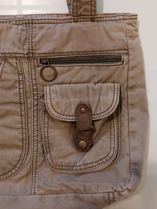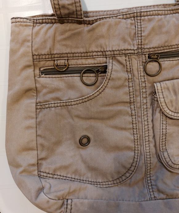 Sa prednje strane torbe nalaze se 2 pretinca, jedan dužine 10cm, drugi dužine 12cm i zatvaraju se patentnim zatvaračem.