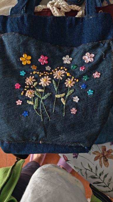 Rucno izradjena i vezena od recikliranog jeansa