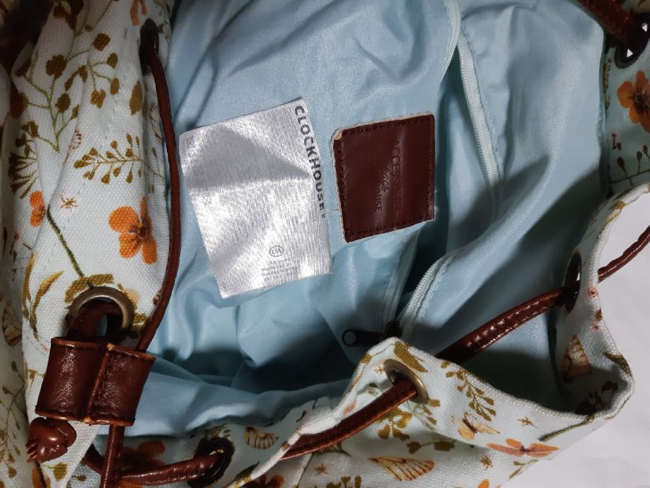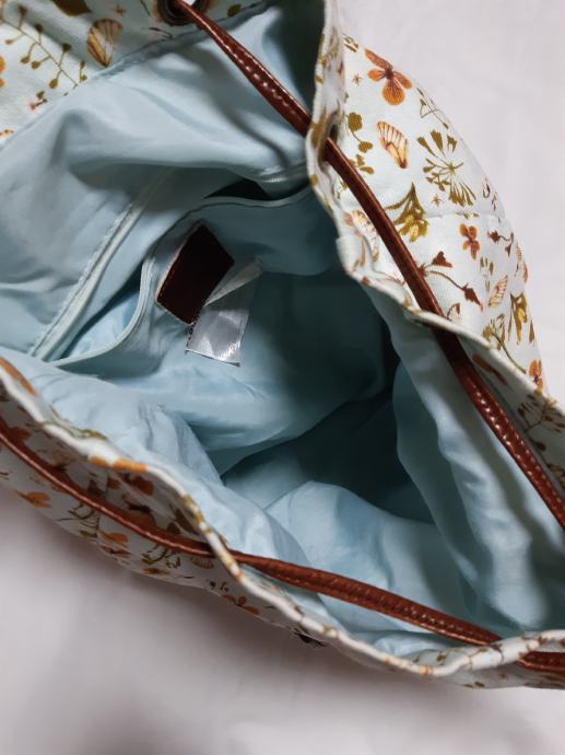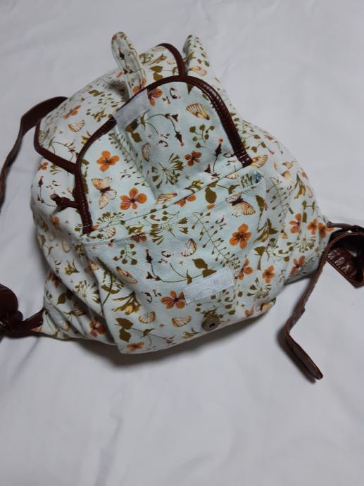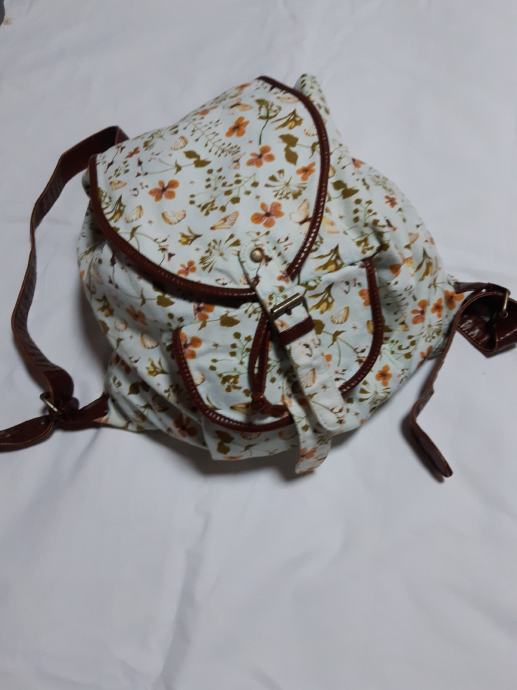Prodajem ruksak sa smedim naramenicama i uzorci leptira, cvijeca....