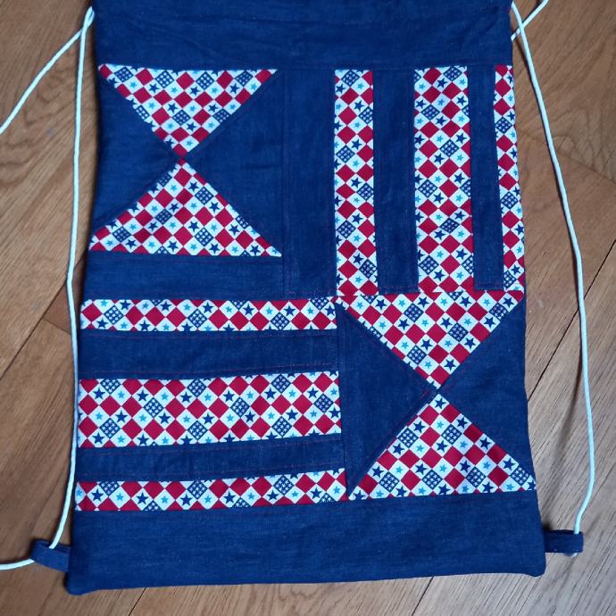 Prodajem ruksak ručni rad. Materijal je kombinacija trapera i pamučnog materijala i može se prati.