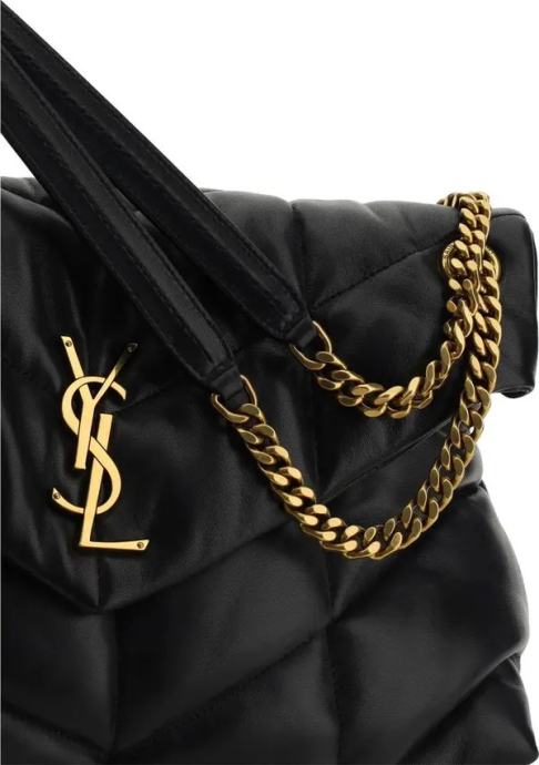 LouLou puffer medium kožna torba na rame koja kombinira eleganciju i praktičnost u ikoničnom dizajnu. Izrađena je od podstavljene i prošivene kože, s prednjom pločicom s pozlaćenim YSL logotipom i preklopom s magnetnim zatvaračem za jednostavan i siguran pristup.