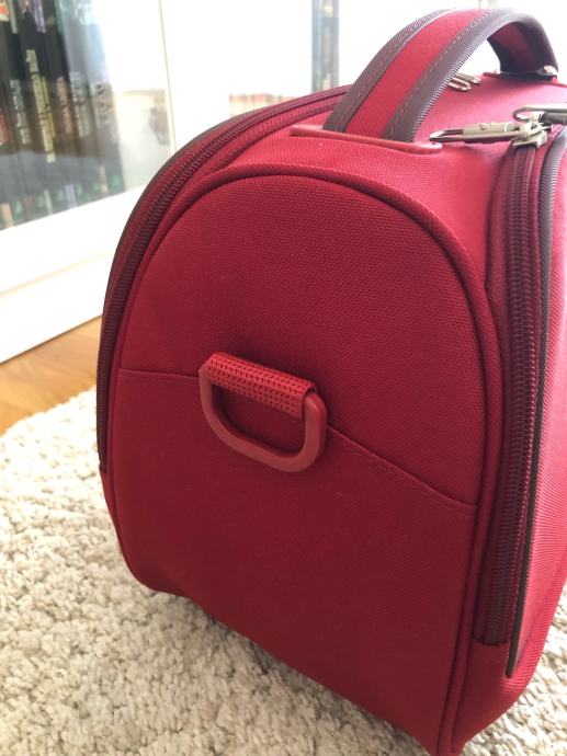 Samsonite 225 serija Airstop plus, mogucnost stavljanja na produzne rucke kofera, odvojivi remen za nosenje preko ramena.