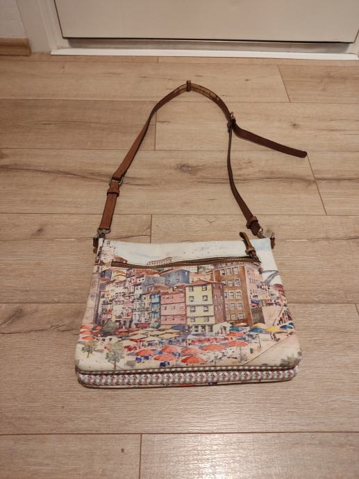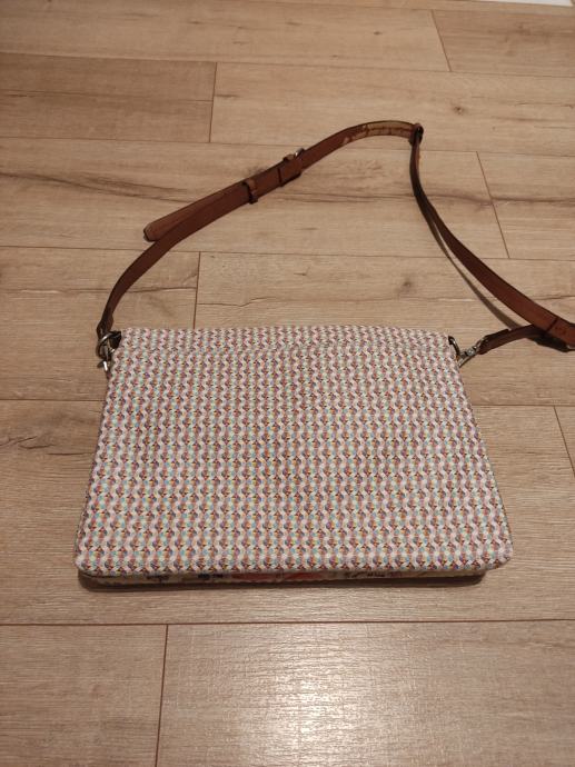 Šarena torbica koja se može nositi na dvije strane. Remen ima oštećenja i trebalo bi ga zamijeniti. U Zagrebu i Karlovcu moguća je primopredaja. Pogledajte i ostale moje oglase, na više kupljenih stvari popust.