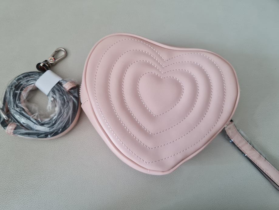 Seidenfelt nova kožna torbica u obliku srca, sa još zapakiranim remenom.