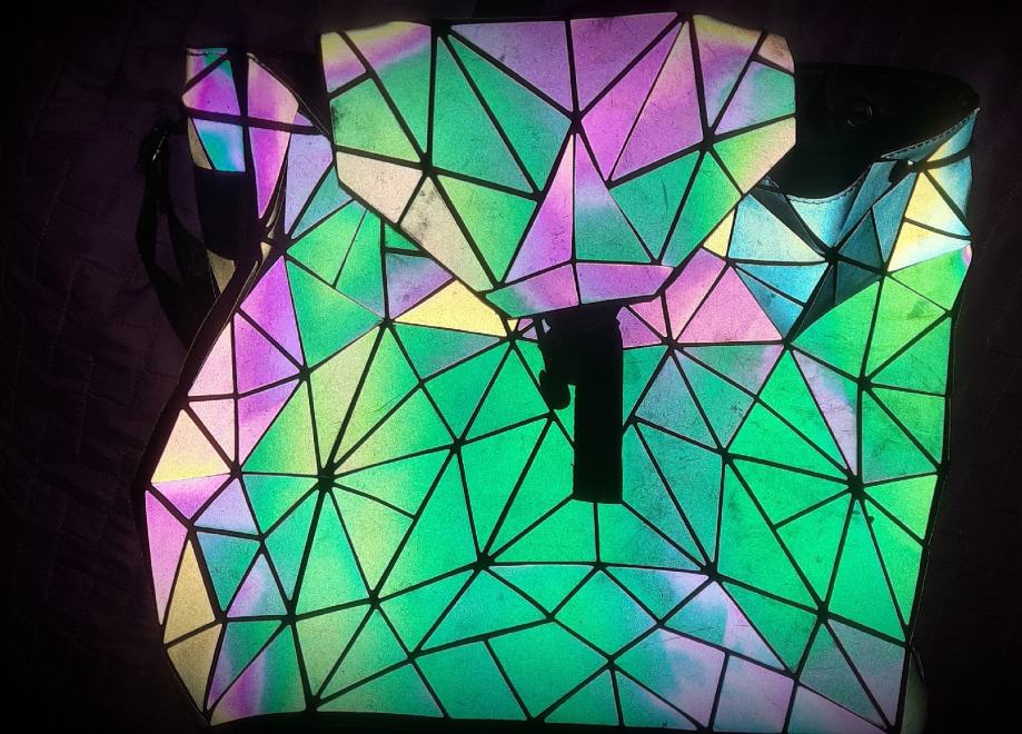 Ruksak srednje veličine mijenja boje ovisno o svjetlu.