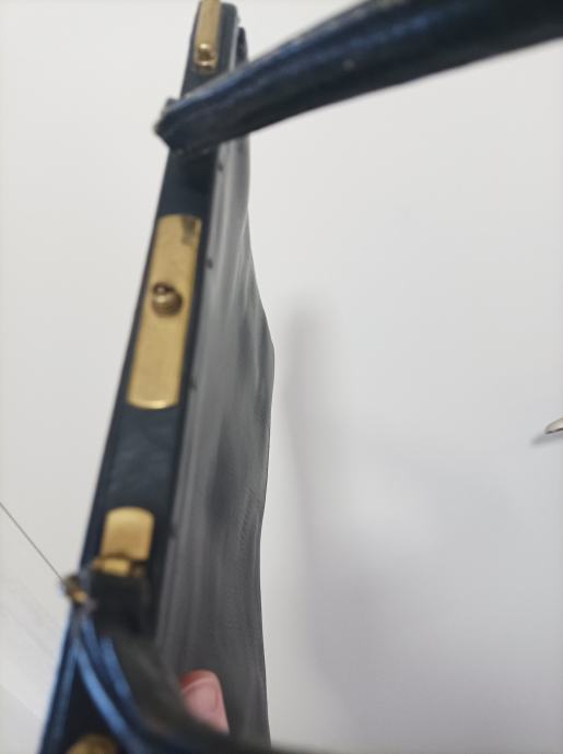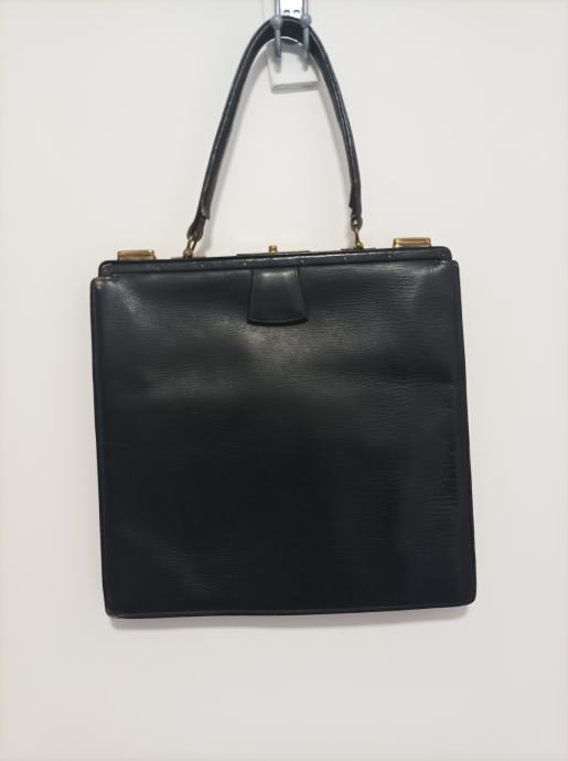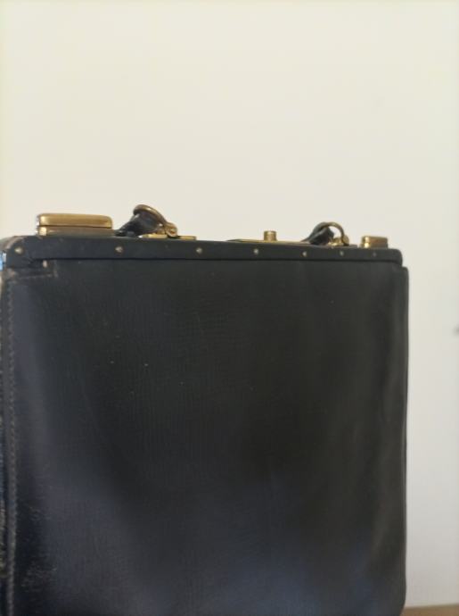 Vrlo zanimljiva crna torba s još zanimljivijim otvaranjem. S obzirom da je iz 70-ih godina ima neka blaža oštećenja na rubovima. Unutra se nalazi i staro, vrlo staro malo ogledalo .