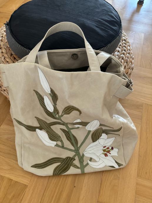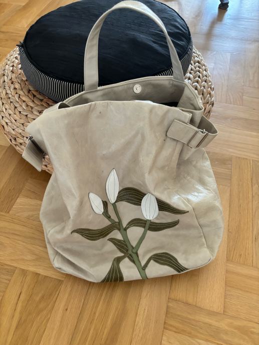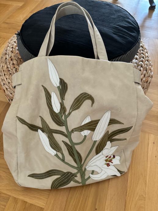 Nosena minimalno, bez ostecenja, koza, na kozi sivani cvjetovi od koze