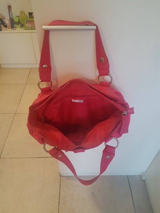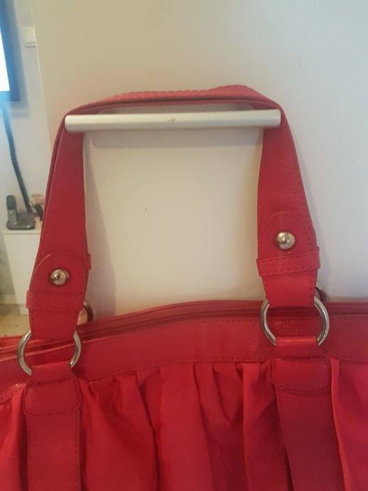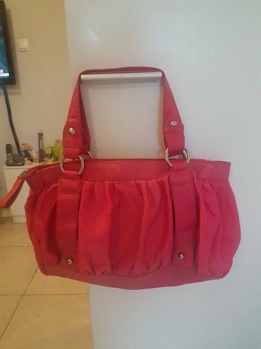 Torba kupljena u H&M. načinjena je od dvaju materijal. Jedan je materijal svilenkast. Nošena, ali očuvana. Ručka kraća, ali se može nositi na rame.