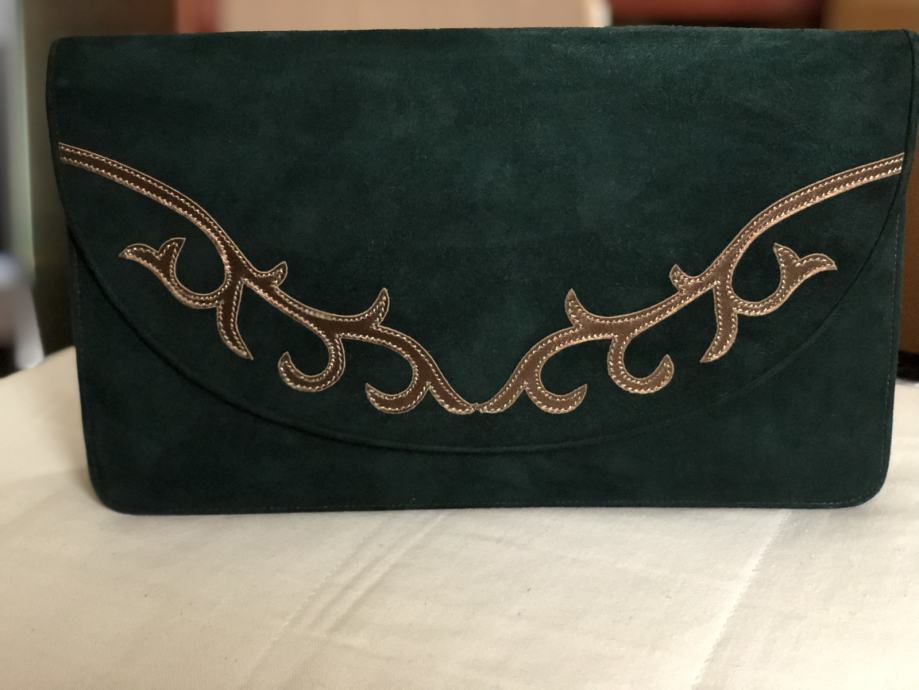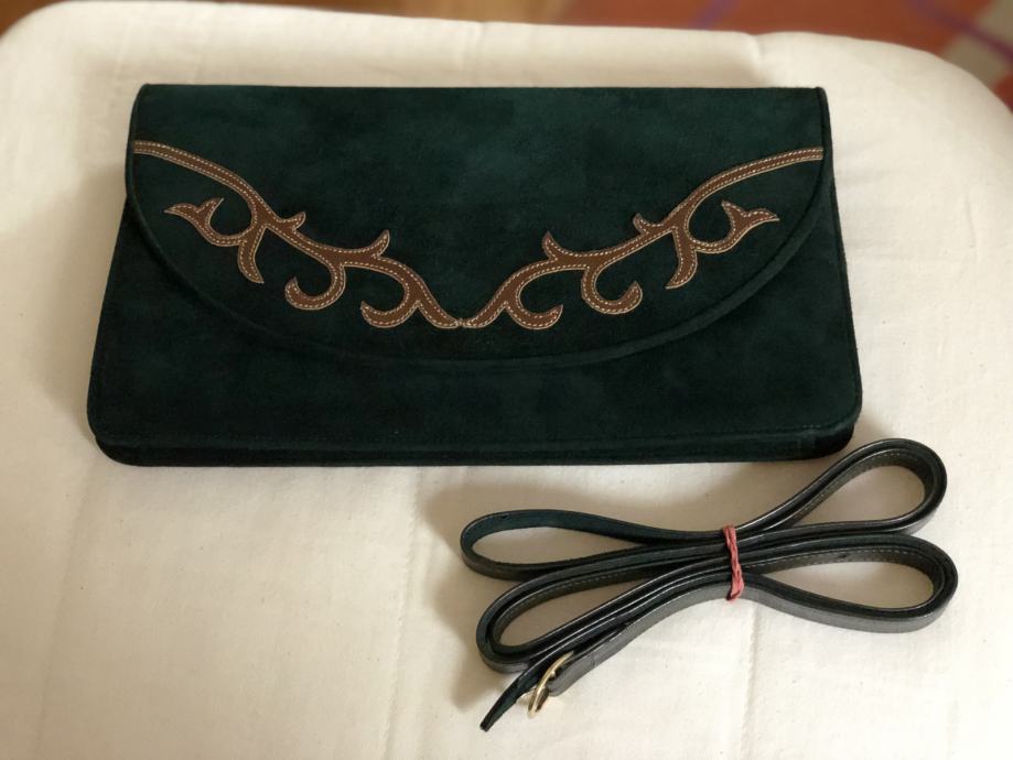 Torba je kruta, tamno zelene boje u imitaciji brušene kože. uz torbu dolazi u dugačak remen za na rame. Torba je u potpunosti nova, nikad nošena.