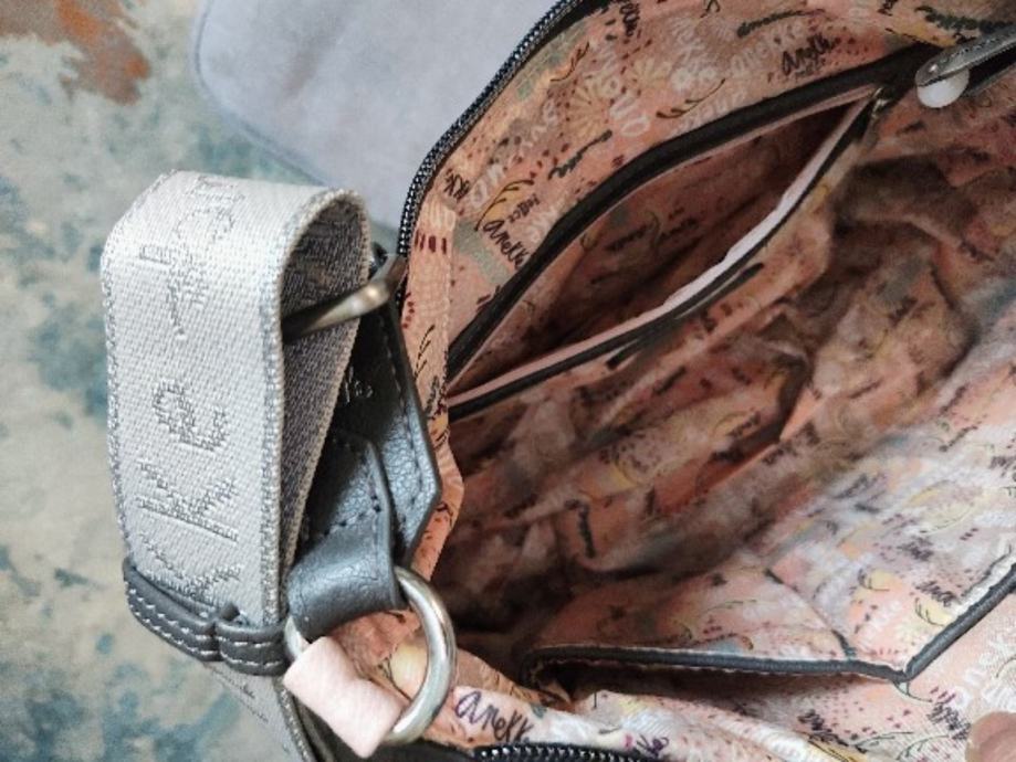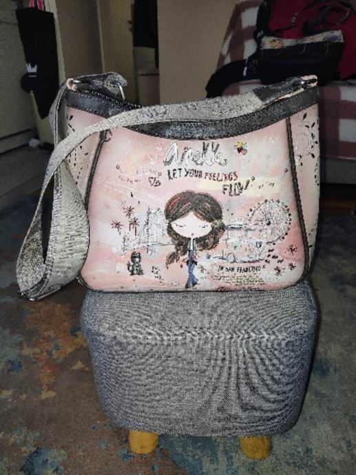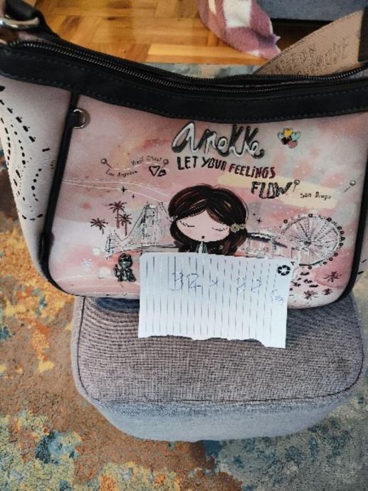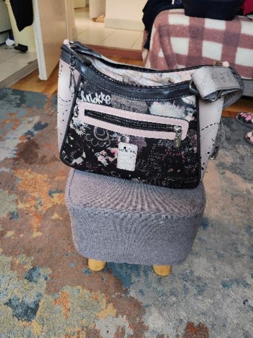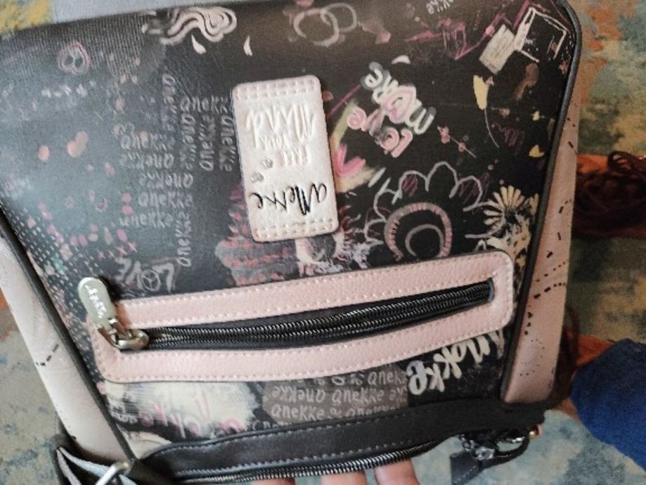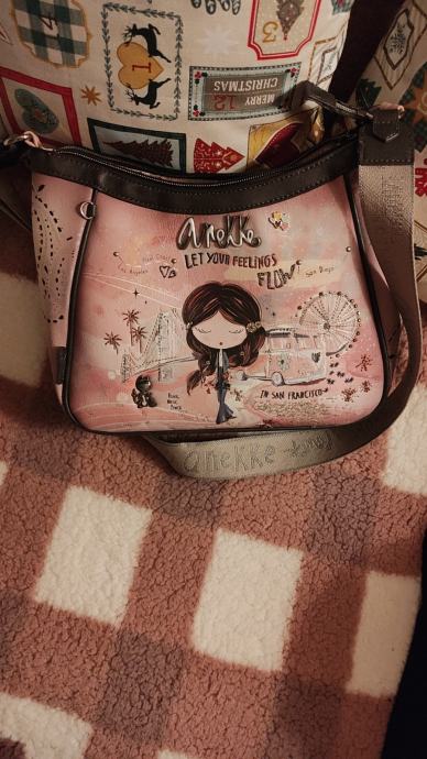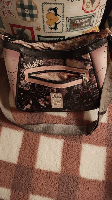 Anekkica malo nošena,dosta duboka,stane kišobran,boca vode,i sve ženske sitnice,vanjski đep dubok.Boje bež,nježno roza.Kolekcija Peace.