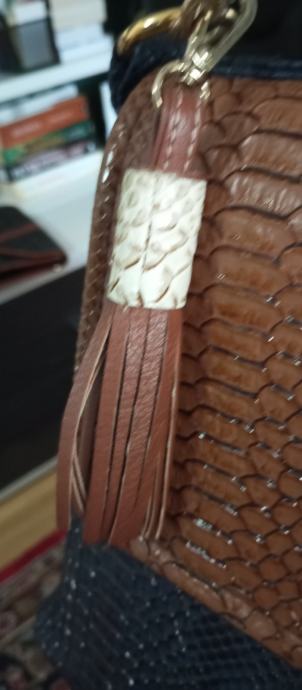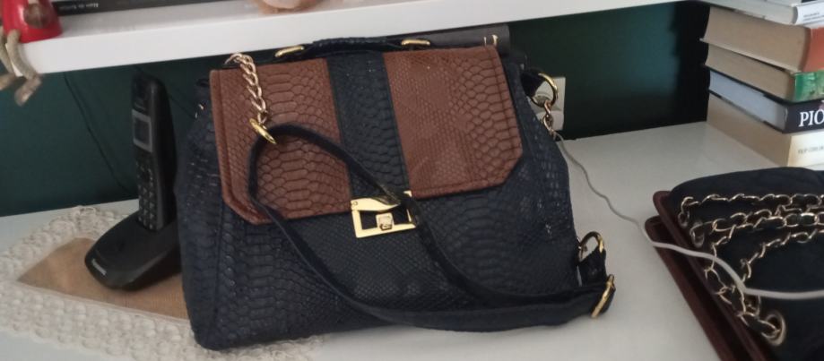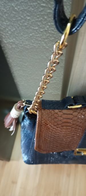 Prodajem prekrasnu torbu kroko koža,kombinacija t smeđa i t.plava.Nošena malo, nema nikakva oštećenja