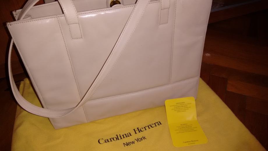 Torba, zenska marke Carolina Herrera sa cetifikatom kupljena u SAD-u, elegantna, klasična veća, svijetlo bež boje.