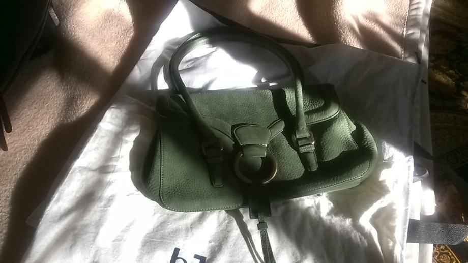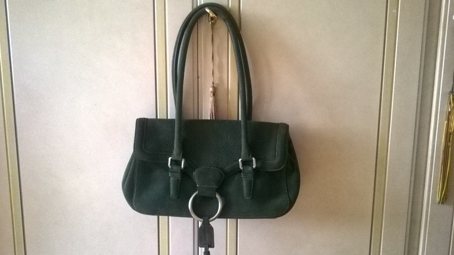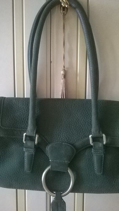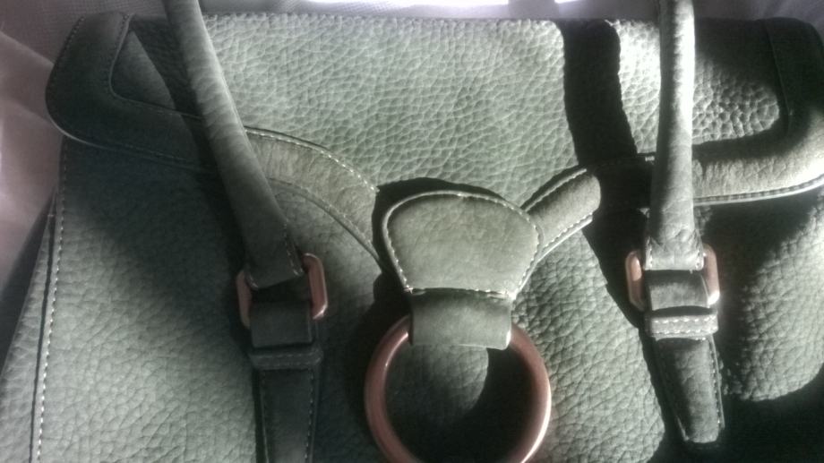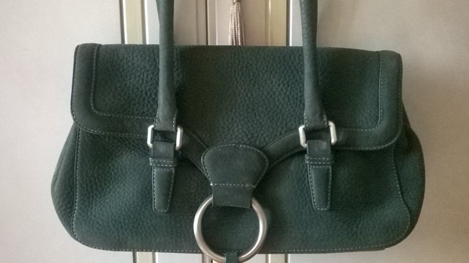 JAKO LIJEPA DIZAJNERSKA TORBA , PRAVA BRUŠENA KOŽA, SA PRETINCIMA ,ZELENA