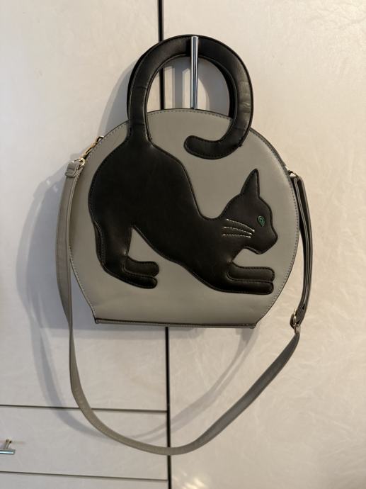 Prodajem torbu u obliku mačke, sivo-crna boja. Prostrana unutrašnjost, ručke i dodatan duži remen.