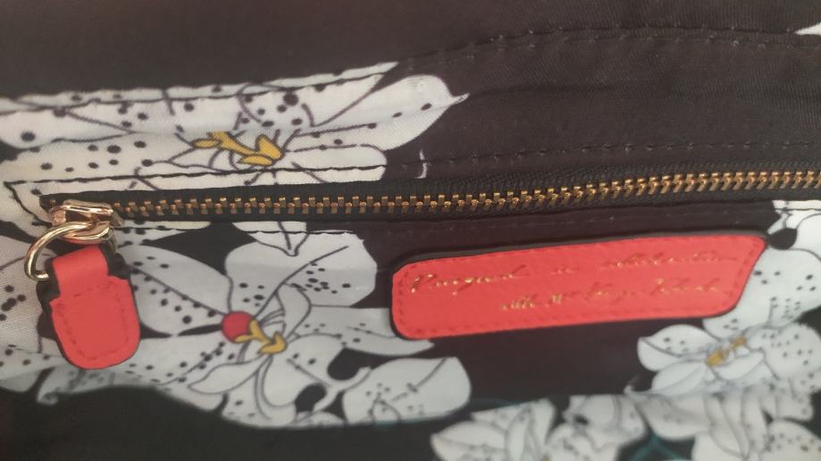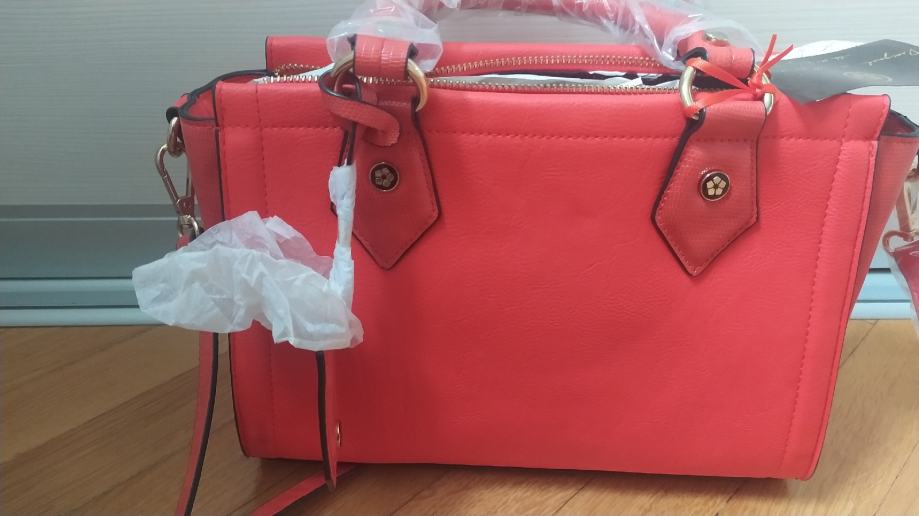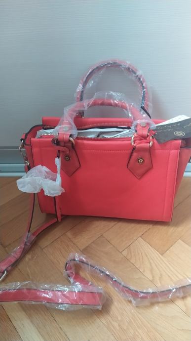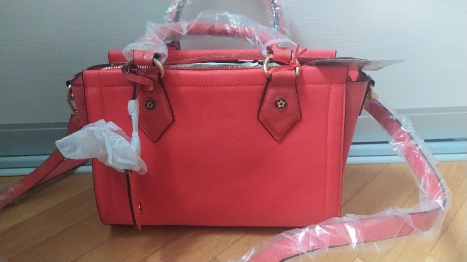 ženska torbica potpuno nova, nekorištena, boja narančasto crvena. Sa puno retinaca, moderna boja.
