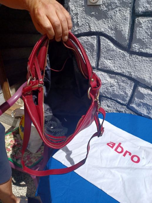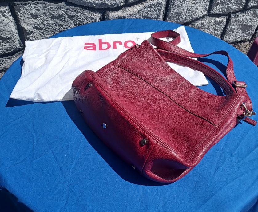 Prekrasna original nova bordo kožna torba marke Abro, sa dodatnim remenom za nošenje na ramenu, dolazi u original vrečici. Primopredaja Zagreb ili slanje poštom nakon vidljive uplate na računu